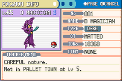 - All Gym Leaders, Elite 4, and Champion were replaced with Yu-Gi-Oh characters